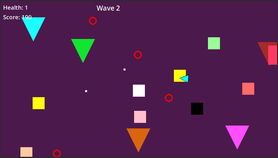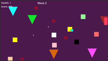 Triangle VS Circles is a top-down shooter where you survive 5 waves of increasingly chaotic enemies in a shifting geometric space.